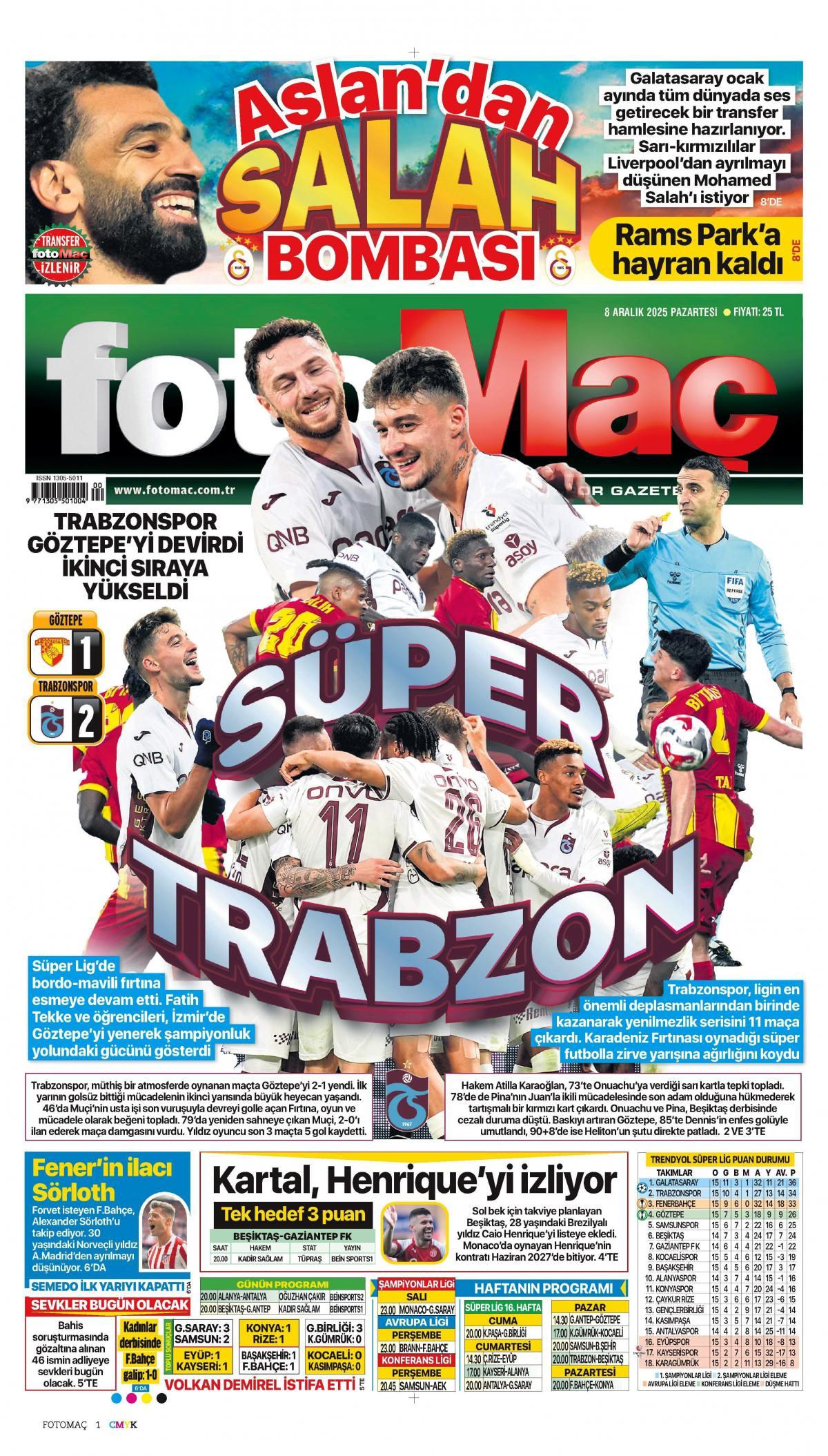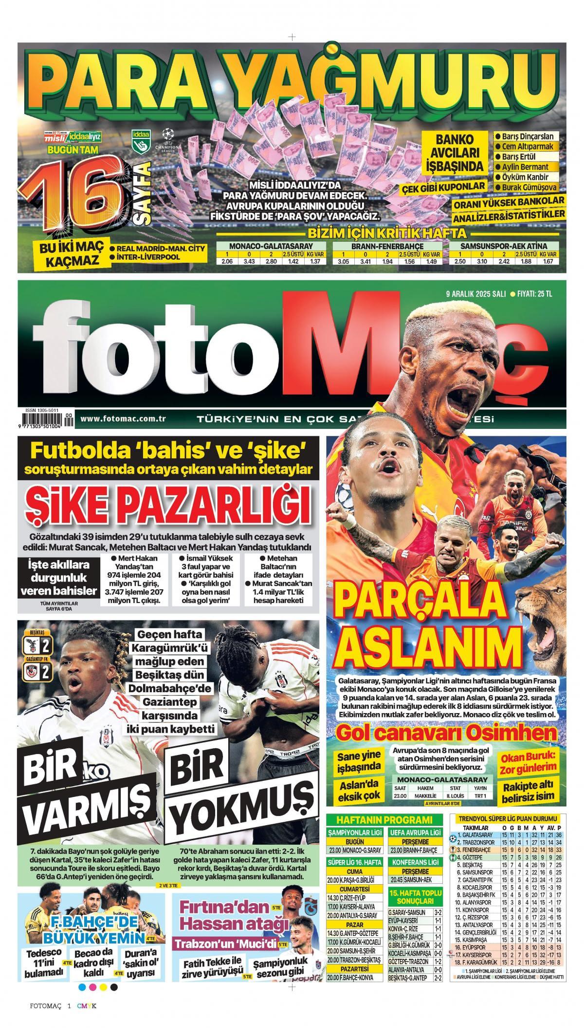 Fotomaç Gazetesi 9 Aralık 2025 Günü Manşeti