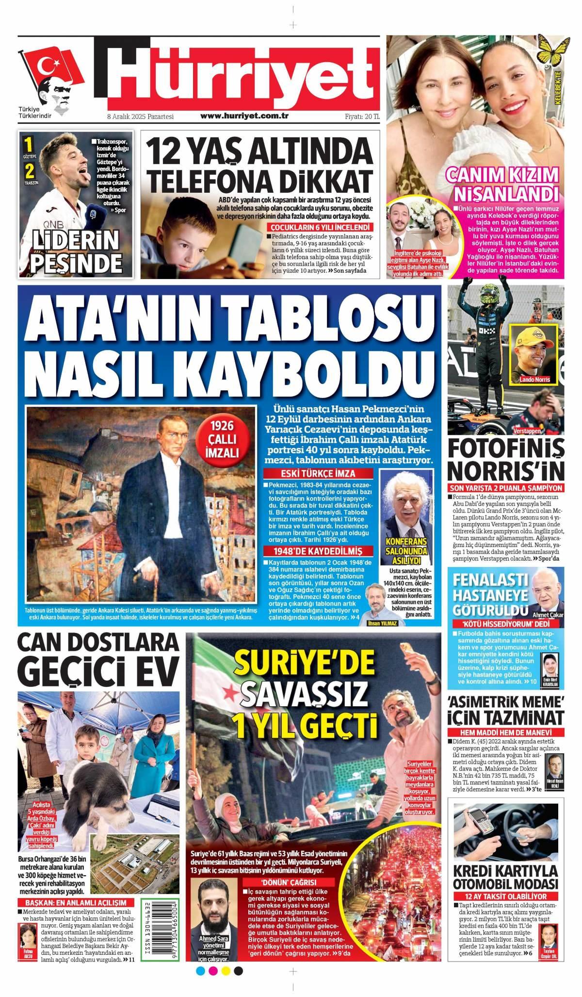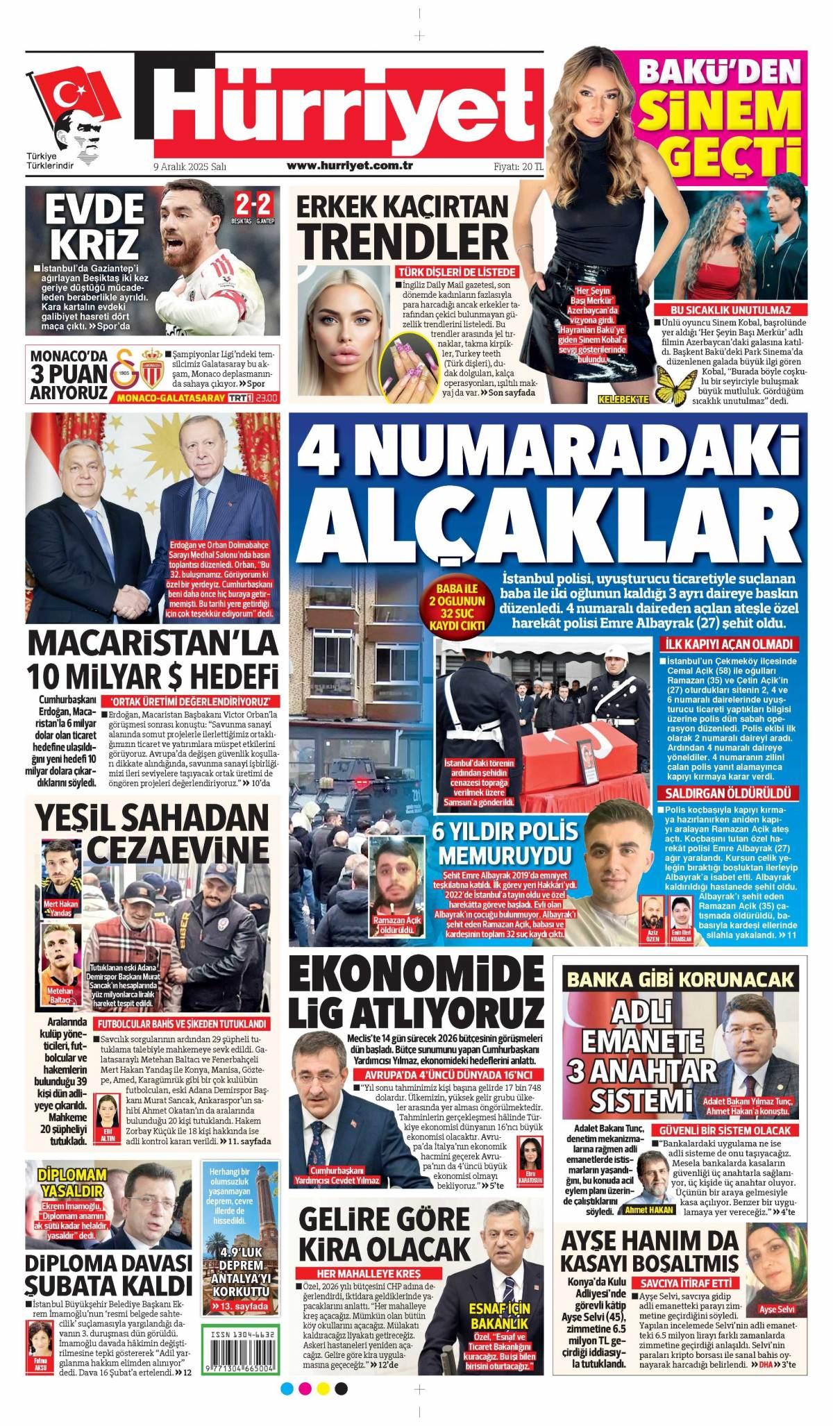 Hürriyet Gazetesi 9 Aralık 2025 Günü Manşeti