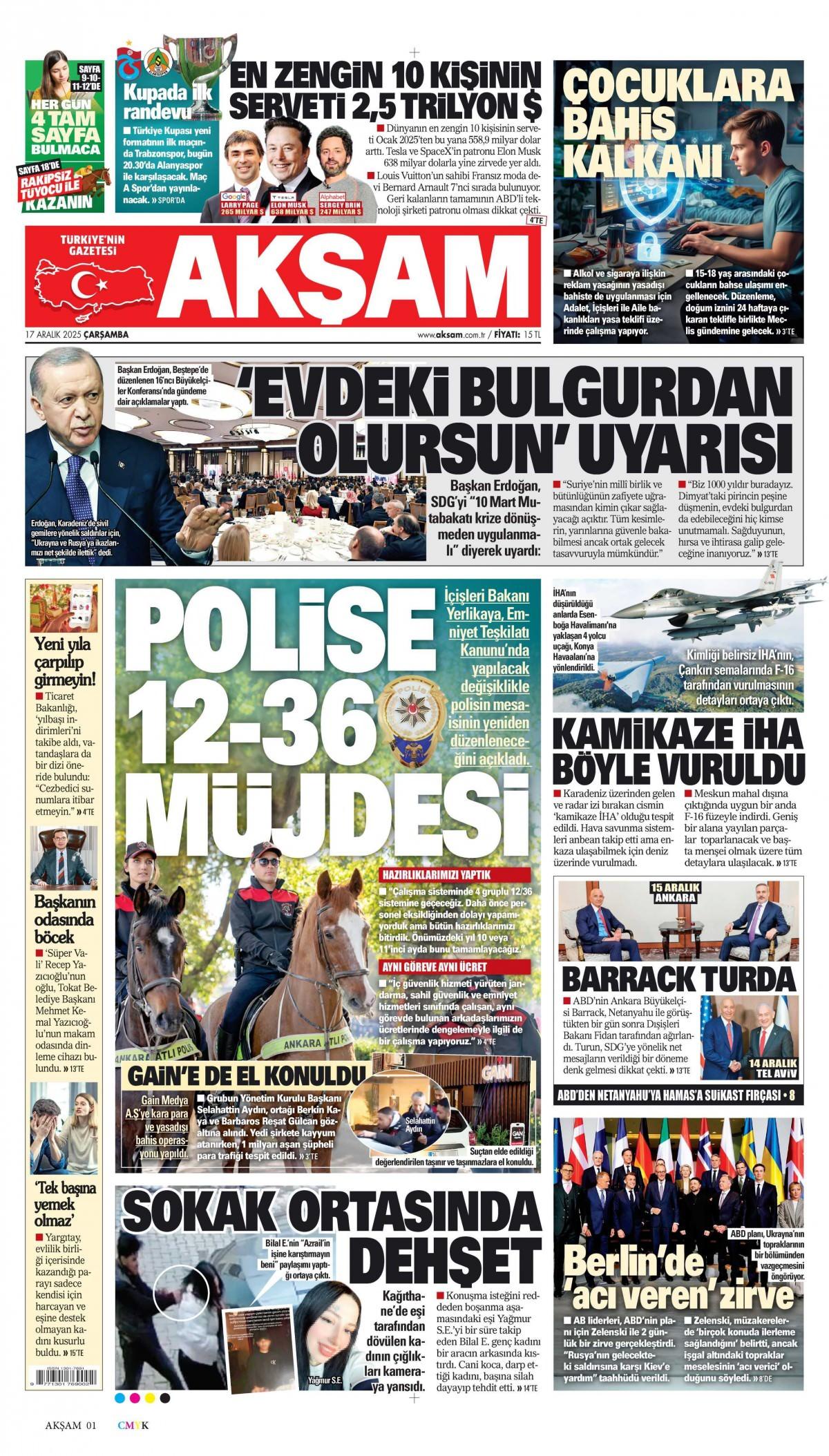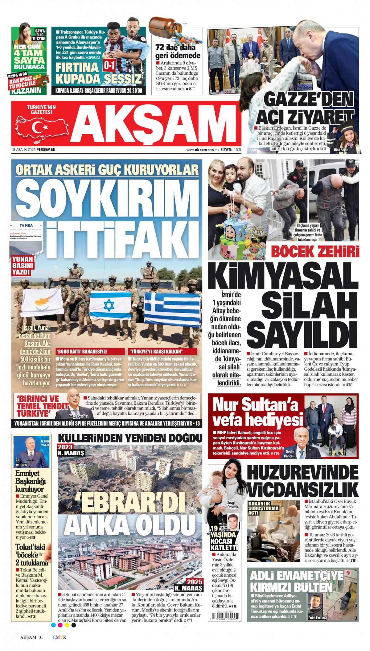 Akşam Gazetesi 18 Aralık 2025 Günü Manşeti