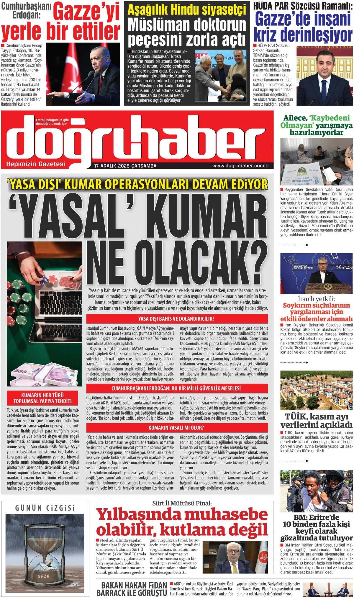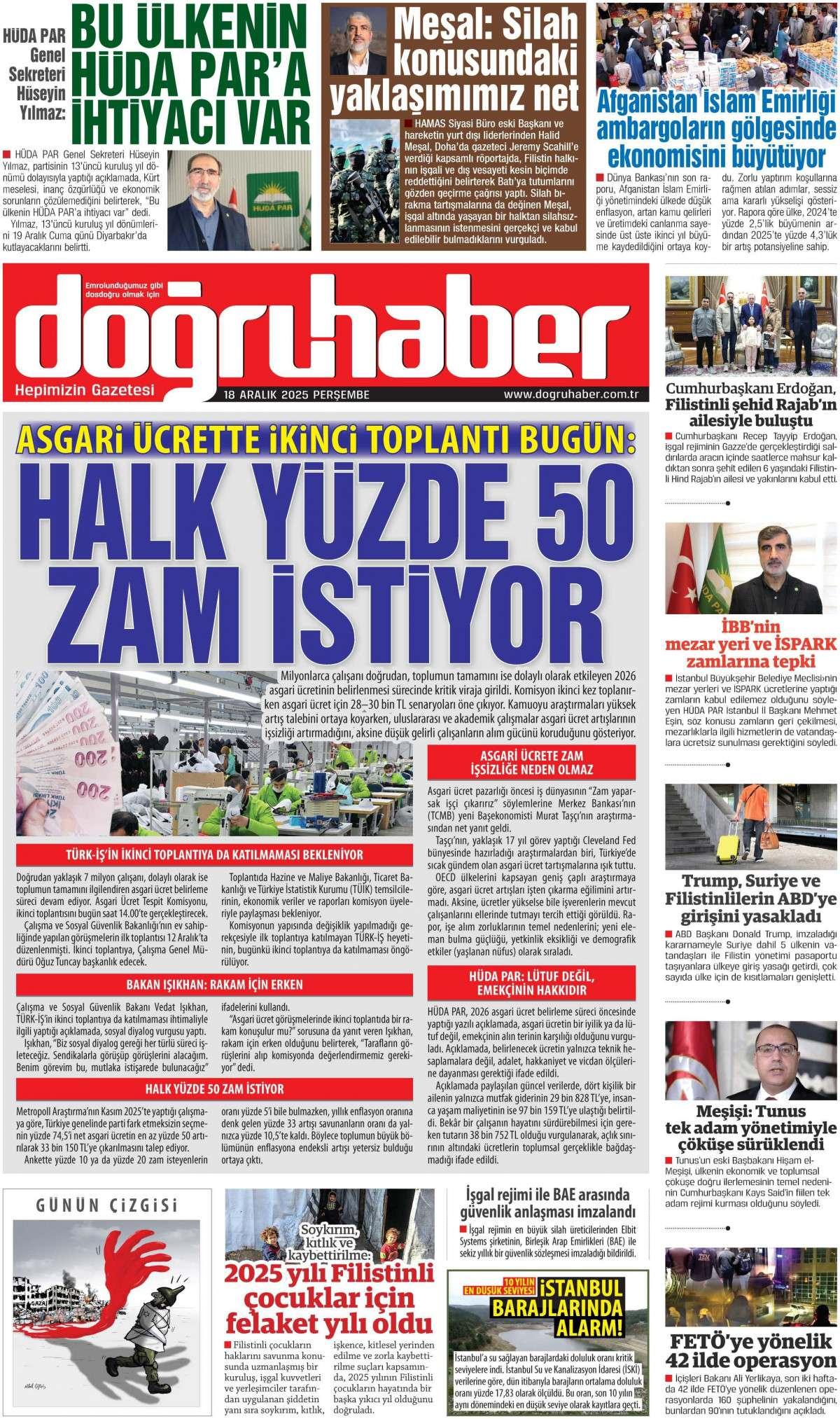 Doğru Haber Gazetesi 18 Aralık 2025 Günü Manşeti