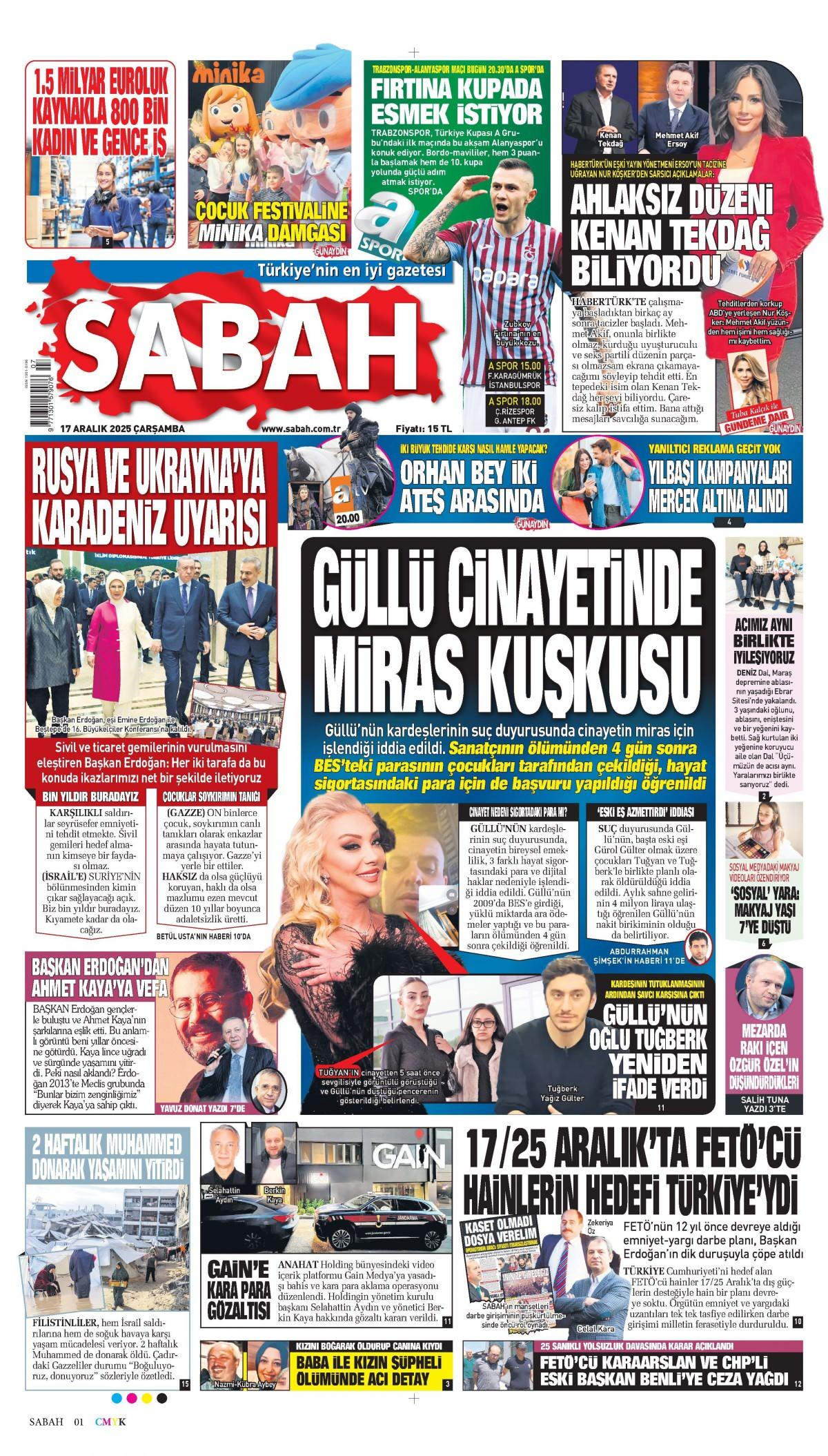 Sabah Gazetesi 18 Aralık 2025 Günü Manşeti